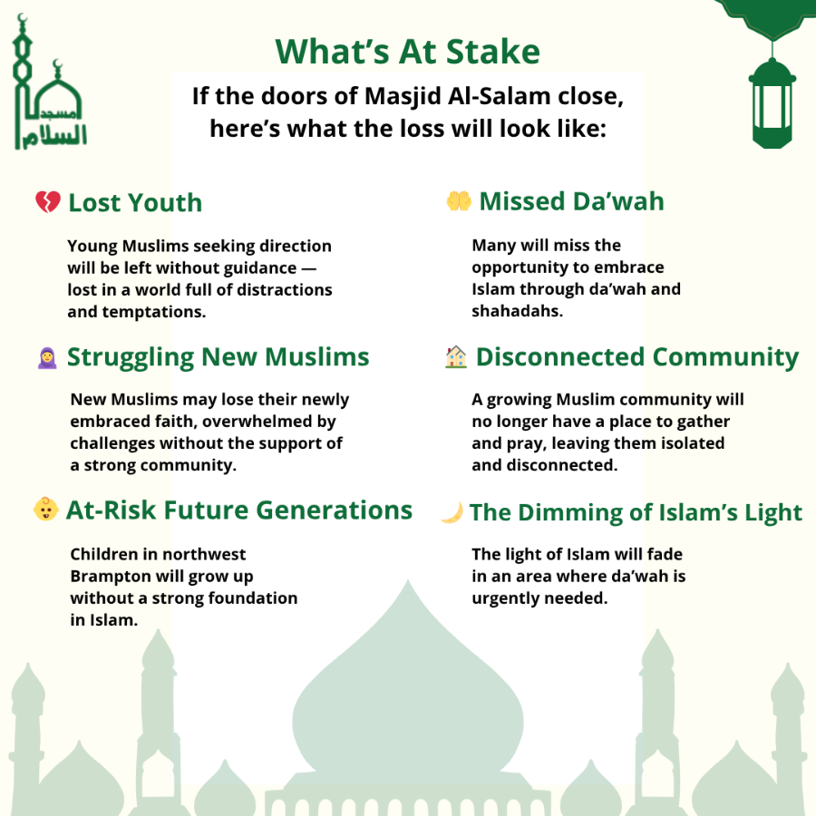 Every Friday, while you prepare for Jumu’ah, your charity will already be on its way — quietly sustaining Masjid Al-Salam, a place that gives 1,300 worshippers in Brampton a home to pray, learn, and grow in faith.